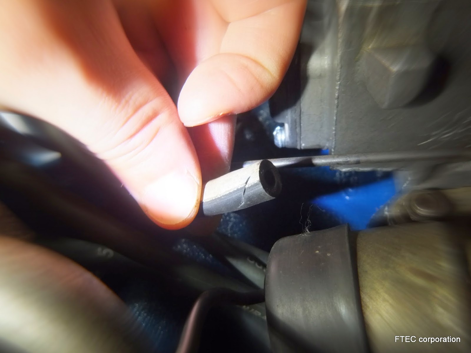 ダメージのあるホースは、オリジナルのものと長さを合わせ、かつ自然な取り回しとなるように新品のバキュームホースを切って交換します。長い年月が経つうちに、間違って配管されたり、不適切な長さで交換されているケースもあるので、よく検証して接続していきます。